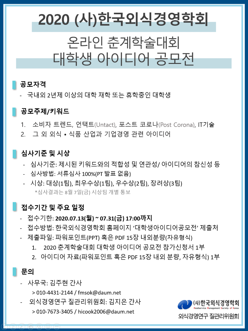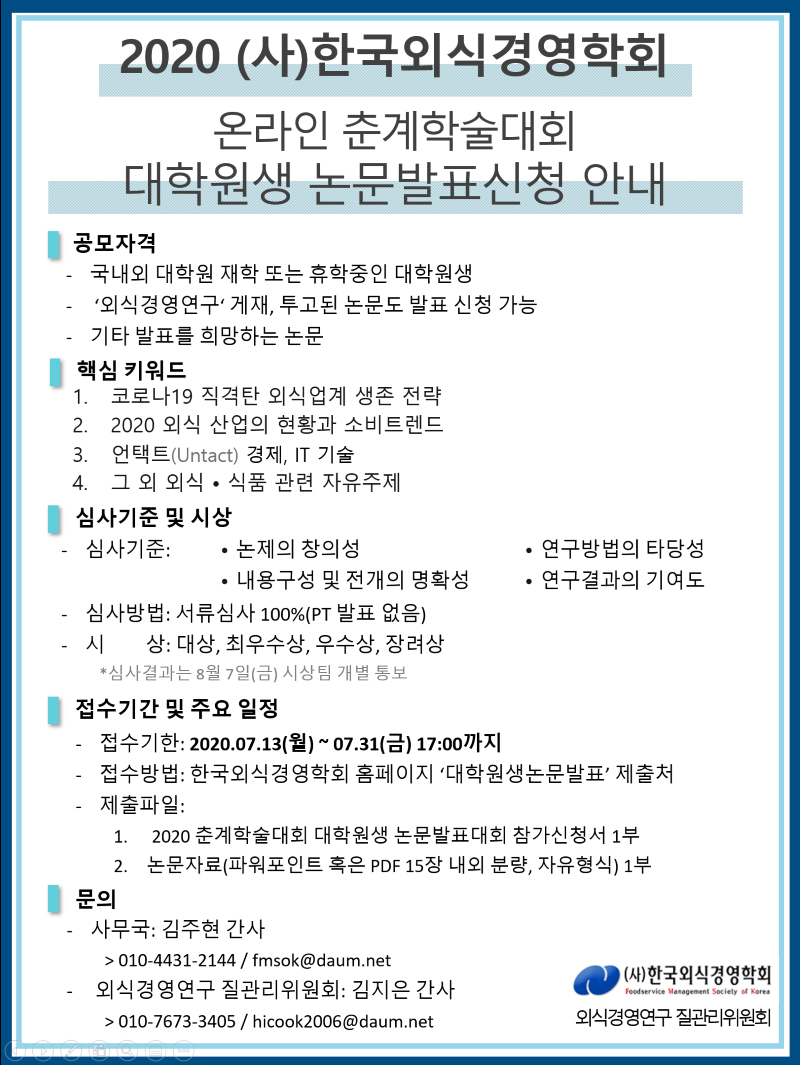 (사)한국외식경영학회 2020년도 춘계 온라인 학술대회 안내
