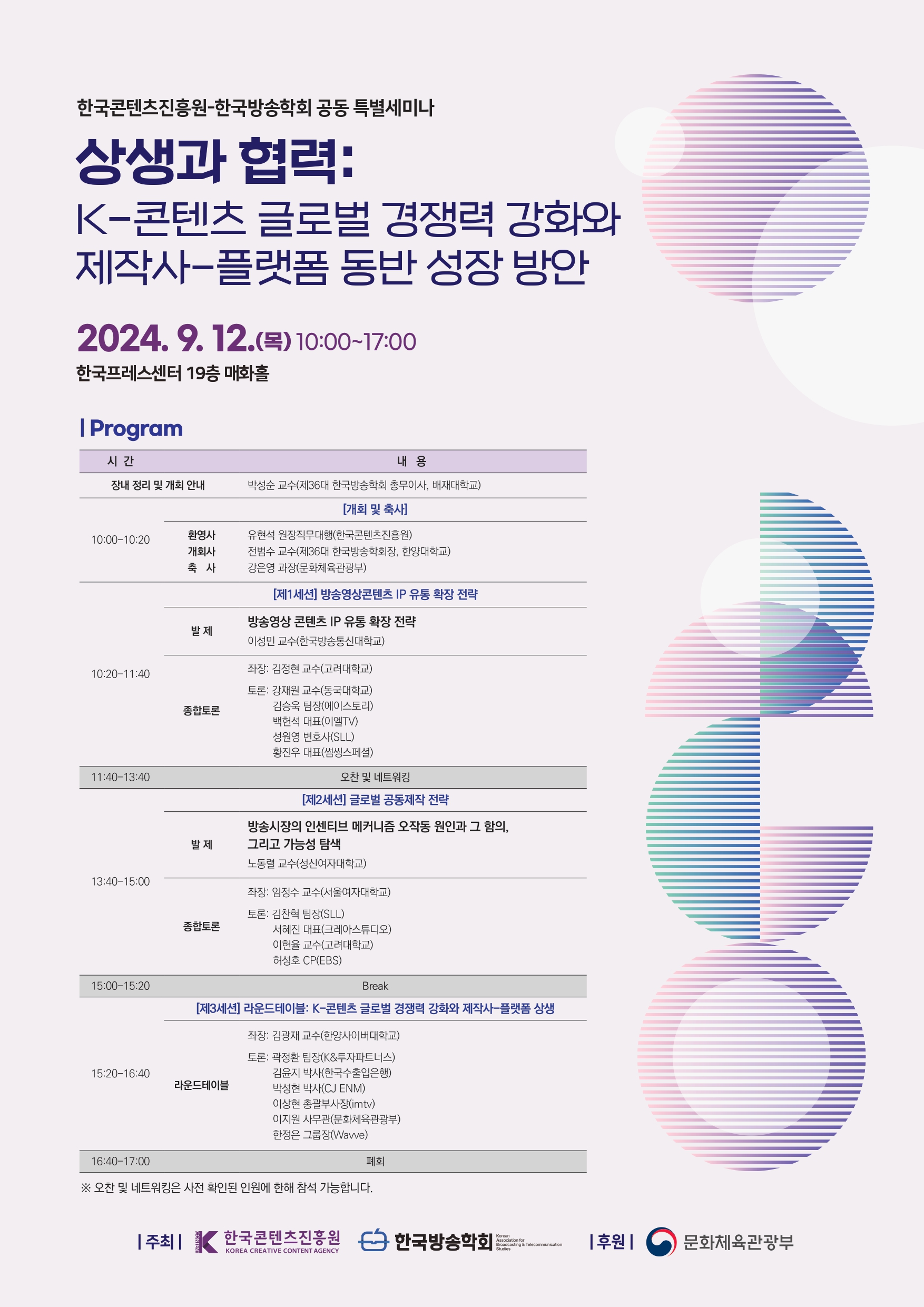 한편, 한국콘텐츠진흥원-한국방송학회 공동 특별세미나는 방송영상산업에 관심있는 누구나 참여할 수 있다.
