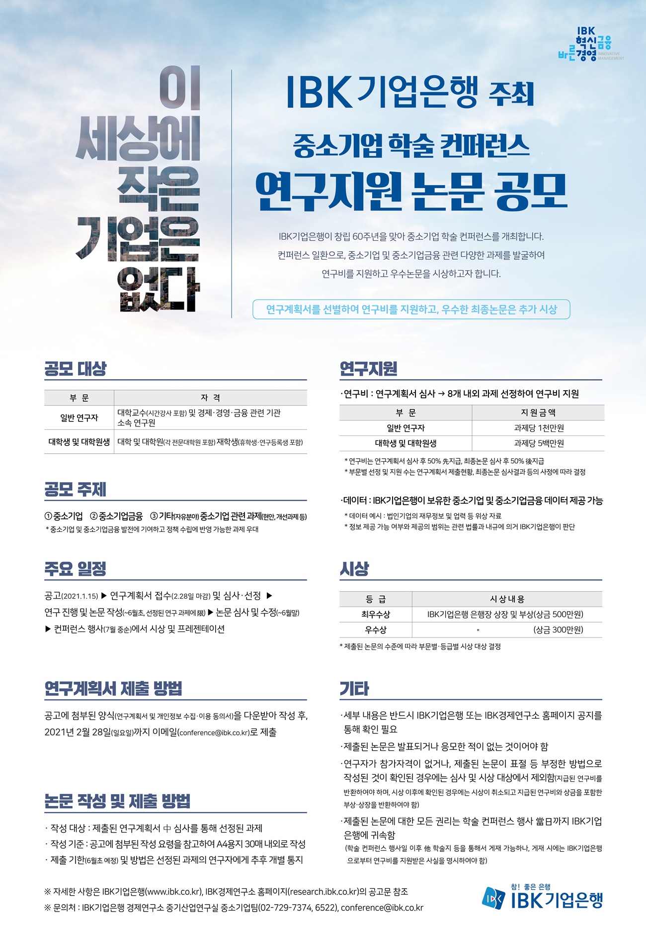 [IBK기업은행] 중소기업 학술 컨퍼런스 연구지원 논문 공모