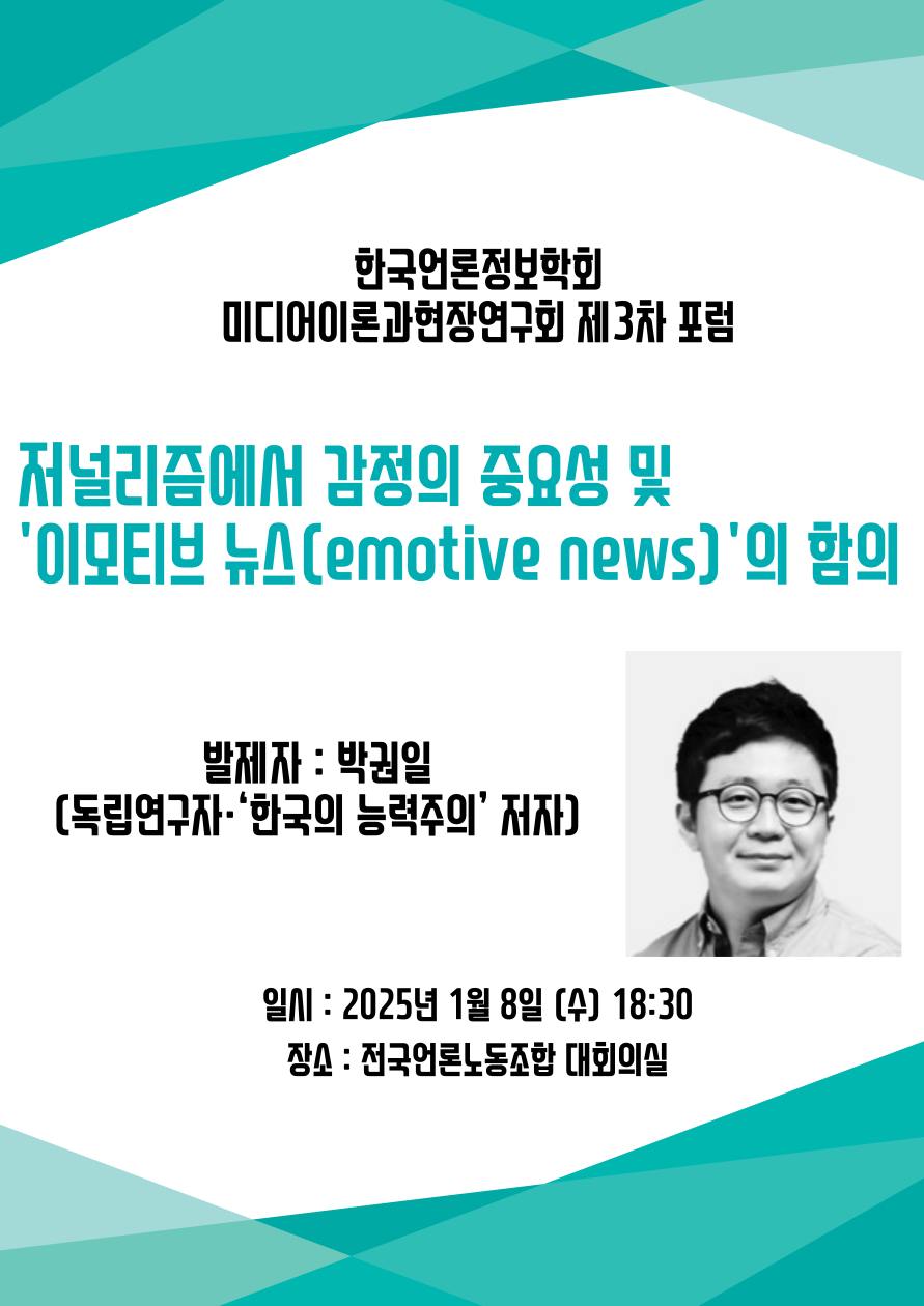 1. 회원님의 건승을 기원합니다. 2. 한국언론정보학회의 '미디어 이론과 현장 연구회'에서 오는 1월 8일 포럼을 개최합니다. 포럼과 관련한 안내를 다음과 같이 보내드리오니, 회원 여러분의 많은 관심을 부탁드립니다. ◀ 다 음 ▶ □ 기획 안내 시민의 교육수준 향상은 의심의 여지가 없지만, 민주주의 현실은 곳곳에서 또렷한 퇴행의 신호를 보이고 있다. 지식의 전달만으로 탈진실, 허위정보, 극단주의의 세계적 창궐을 막는 것이 사실상 불가능하다는 점이 점점 명확해졌다. 지나치게 많은 정보, 지나치게 많은 뉴스는 경쟁을 통한 질의 상승이 아니라 오히려 검증의 물리적 불가능성과 수용자 피로감을 야기해 신뢰 위기를 가져올 수 있음을 보여주었다. 신자유주의 이후 불평등의 격화는 많은 나라에서 정치체제의 정당성 위기를 불러왔고 극우 포퓰리즘은 비이성적 선동에도 불구하고 점차 헤게모니를 장악해갔다. 이러한 현실을 상기해보면, 모순을 저지르지 않고는 부정하기 힘든 의사소통의 준칙을 제시함으로써 공론장의 담론 윤리를 절차적으로 정초하려 했던 하버마스의 시도는 사실상 실패한 것으로 보인다. 진위 판정과 규범적 논증으로 특징지어지는 저널리즘의 어떤 이상형은 이른바 객관주의 저널리즘으로 실천되어 왔는데, 그것은 이른바 '대안적 사실'을 주장하는 음모론의 범람을 막기엔 역부족임이 드러났다. 이모티브 뉴스(emotive news), 즉 '개인 또는 집단의 감정이 의식적으로 표현되고 적극적으로 해석되는 뉴스'는 감정의 강력한 힘을 활용하여 이러한 현실을 타개하는 한 방편이 될 수 있다. 객관주의 저널리즘 문법에서 감정은 대체로 이성의 방해물 또는 ‘노이즈’로 취급된 경향이 있었다. 또한 선정적 뉴스는 감정을 상업적으로 도구화한다. 그러나 이모티브 뉴스는 감정을 수단으로서만이 아니라 목적으로서 다룬다. 이모티브 뉴스는 인간의 보편적 본성인 감정이 이성의 방해요소이기는커녕 합리적 의사소통을 가능케하는 토대라는 사실을 명료하게 인식한다. 저널리즘이 특정한 수용자들, 예를 들어 정치 고관심층이나 중상위 계층의 이해관심만을 대변한다면 그 저널리즘은 점점 정파화되어 내집단에 대한 편애와 동일시를 당연시하고 정당화하는 ‘부족주의 저널리즘’이 되기 쉽다. 저널리즘의 공동체 형성적 기능이 약화할 때 이런 부족주의 저널리즘이 기승을 부리게 된다. 언론이 억울하게 죽은 이를 애도하고, 아프고 힘든 이들을 위로하고 도울 때, 사람들은 자신이 도움을 받지 않더라도 공동체 구성원으로 살아가고 있음을 실감하고 자신 또한 어려운 사람들을 돕겠다고 결심하게 된다. 그런 측면에서 이모티브 뉴스는 완전히 새로운 현상이 아니라 '오래된 미래'다. 그것은 근대 저널리즘이 태생적으로 가지고 있던 공동체 형성적 기능의 재활성화를 통해 언론의 신뢰가 회복될 수 있는 가능성을 타진한다. 21명의 저널리스트들에 대한 심층 인터뷰를 통해서 그리고 스피노자, 앤더슨, 덴진, 버틀러 등의 이론을 통해서 저널리즘에서 감정의 중요성을 확인하고 이모티브 뉴스의 함의를 살펴본다. □ 포럼 안내 -일시: 2025년 1월 8일(수) 오후 6:30 -장소: 전국언론노동조합 대회의실(지하철 1호선 시청역 프레스센터 18층) -진행: 박영흠(성신여대) -대담: 박권일(독립연구자, <한국의 능력주의> 저자) -문의: 김동원 연구회장(email: dwkim92@gmail.com) -덧붙이는 안내: 포럼 참가 비용은 포럼 이후 뒤풀이의 비용 분담으로 대신합니다. 비용 분담을 하지 않으시더라도 연구회 가입 ‘권유’를 받으시는 것만으로 충분합니다. |