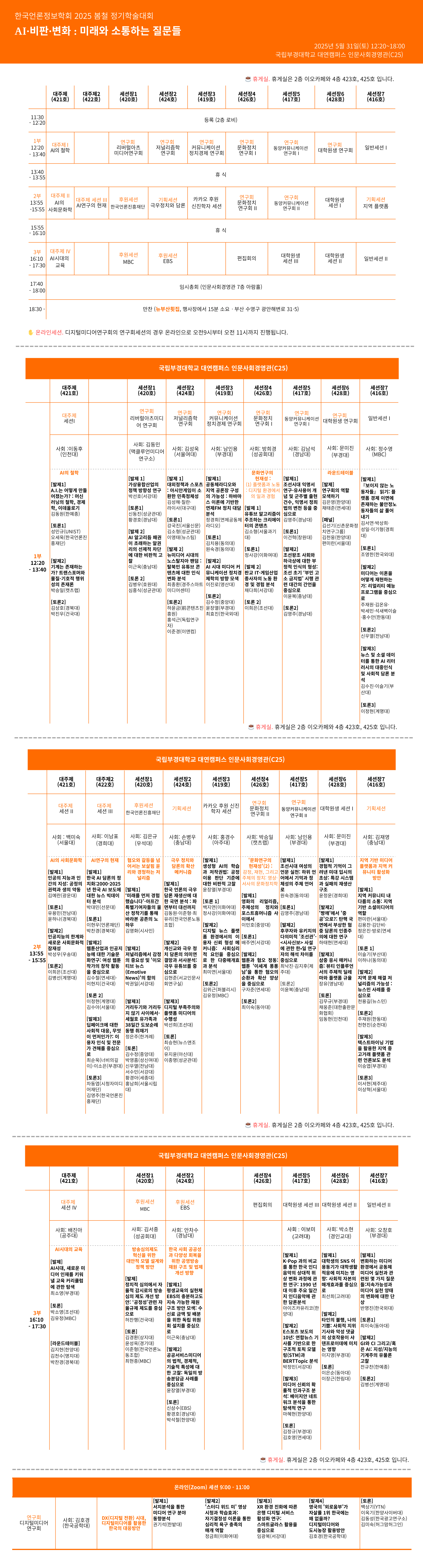 2. 2025 한국언론정보학회 봄철 정기학술대회 세션표를 다음과 같이 안내드립니다.