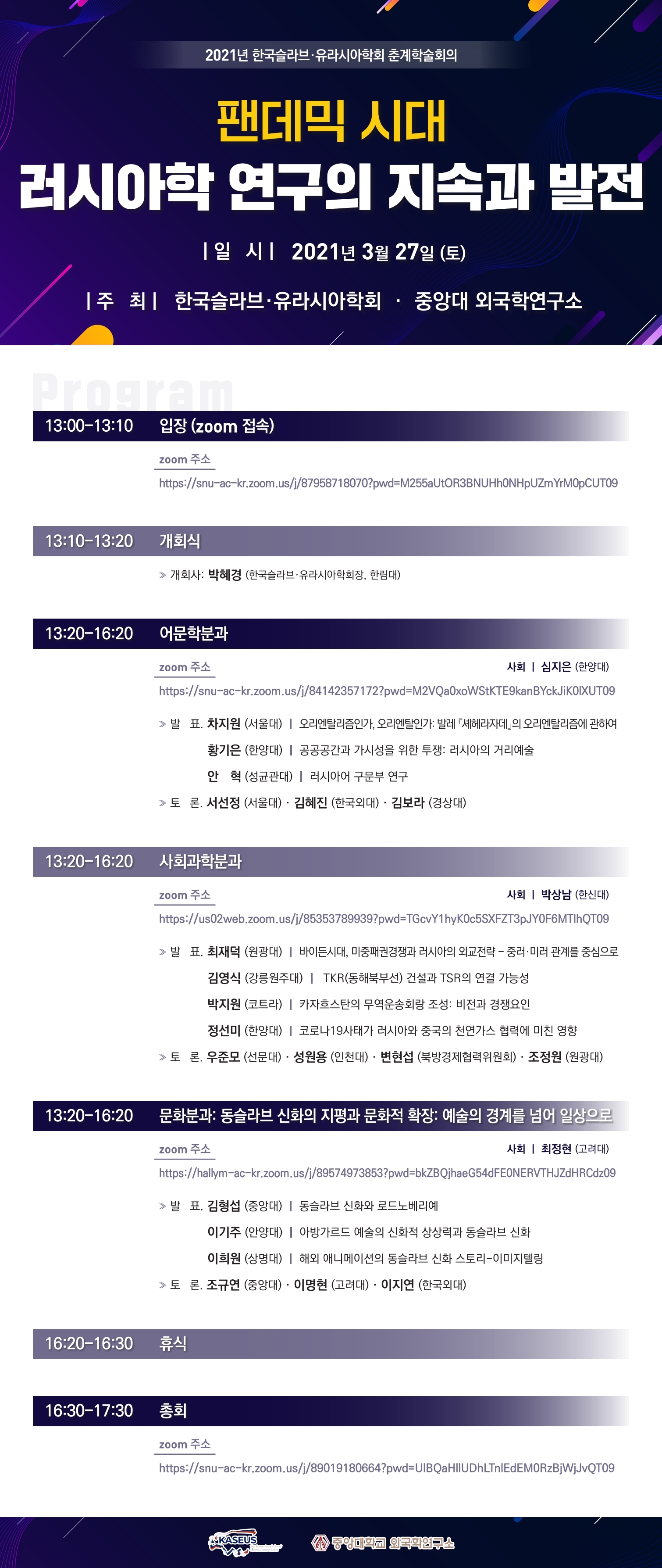 zoom 주소: https://snu-ac-kr.zoom.us/j/84142357172?pwd=M2VQa0xoWStKTE9kanBYckJiK0lXUT09
