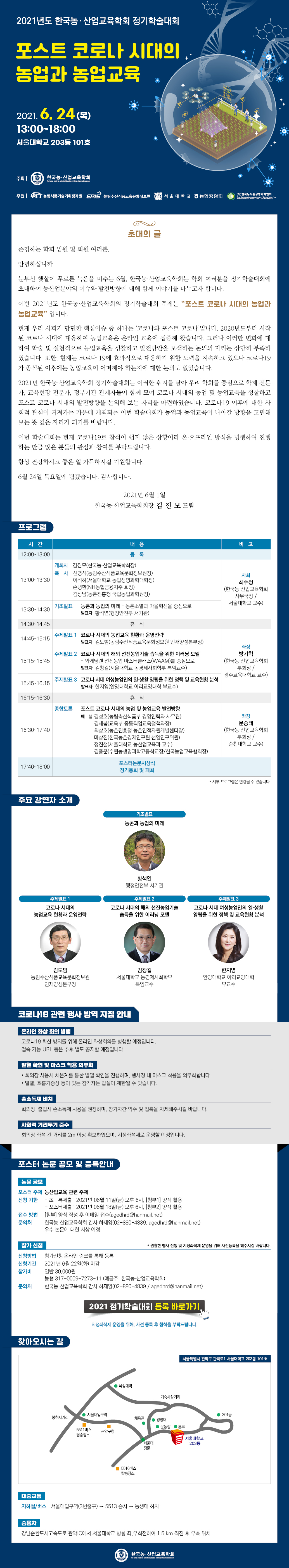 한국농·산업교육학회가 '포스트 코로나 시대의 농업과 농업교육'이라는 주제로 정기학술대회를 개최합니다.