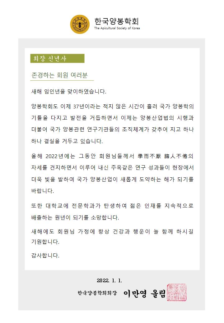 [초록마감연장안내] 2022년 제38차 한국양봉학회 동계학술대회 및 총회 개최 알림