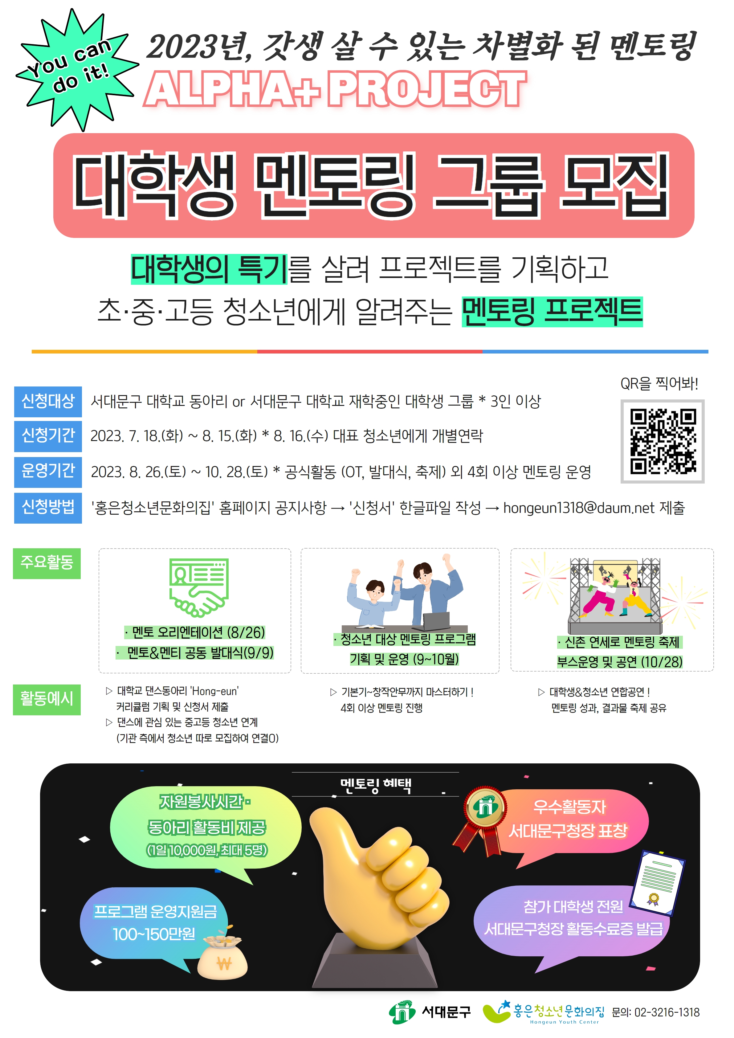 2023년! 서대문구에서 대학생 멘토링 그룹을 추가모집합니다.