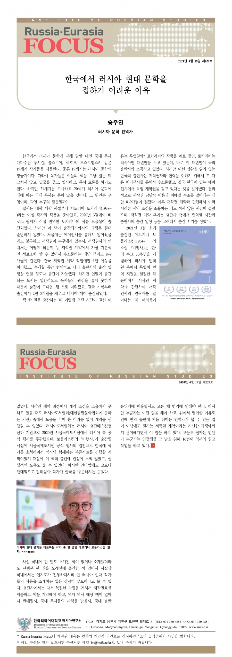 제629호 한국에서 러시아 현대 문학을 접하기 어려운 이유