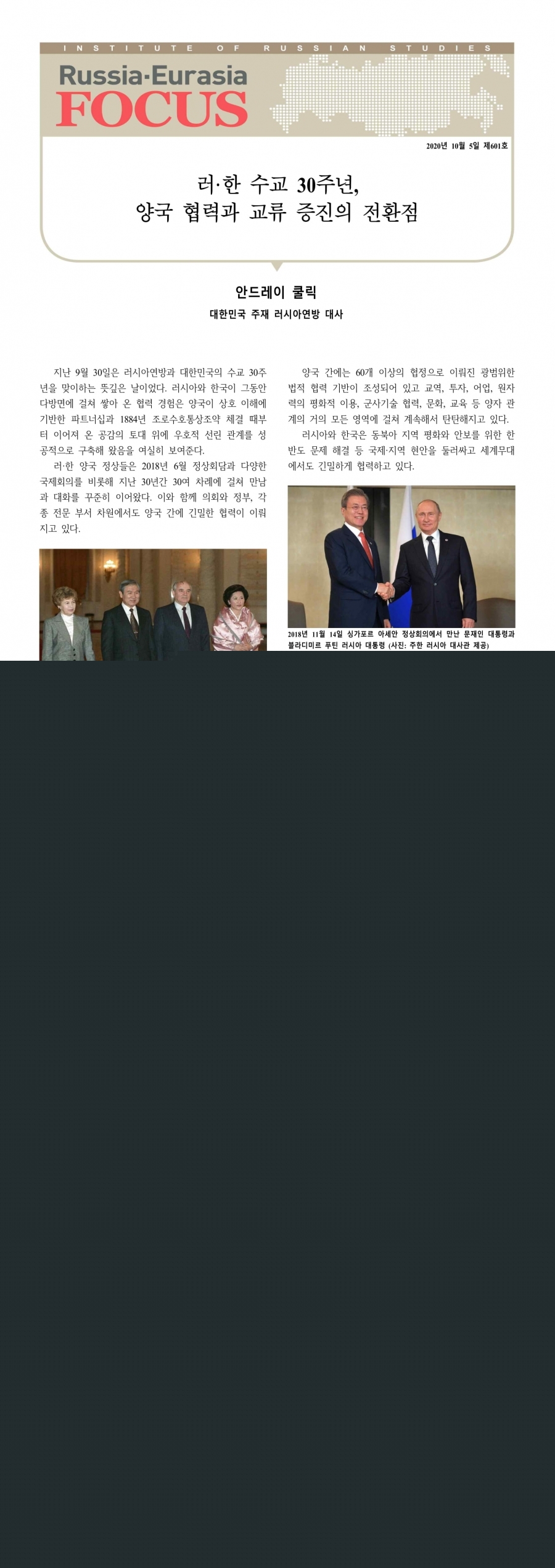 제601호 러·한 수교 30주년, 양국 협력과 교류 증진의 전환점