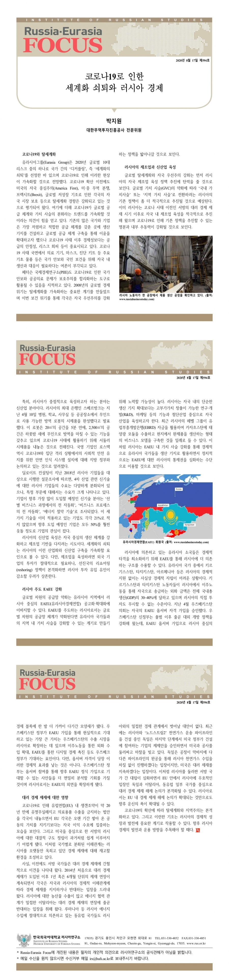 제594호 코로나19로 인한 세계화 쇠퇴와 러시아 경제