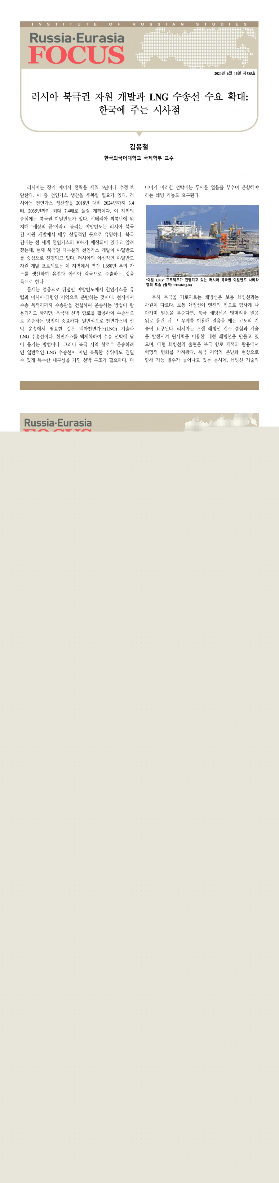 제585호 러시아 북극권 자원 개발과 LNG 수송선 수요 확대: 한국에 주는 시사점