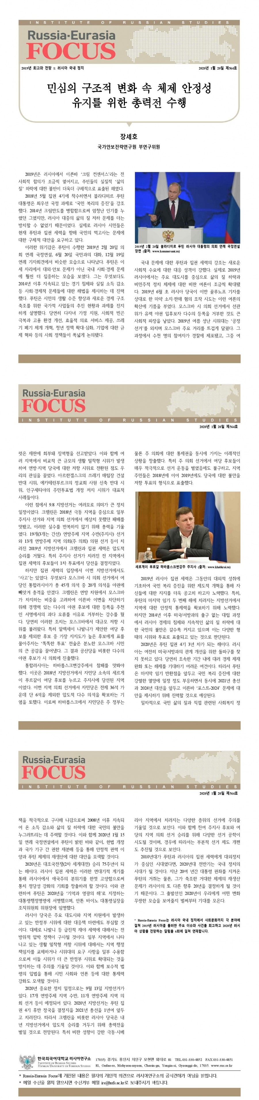 제565호 혼돈 속의 약진: 러시아 대외정책, 2019년 성과와 2020년 전망