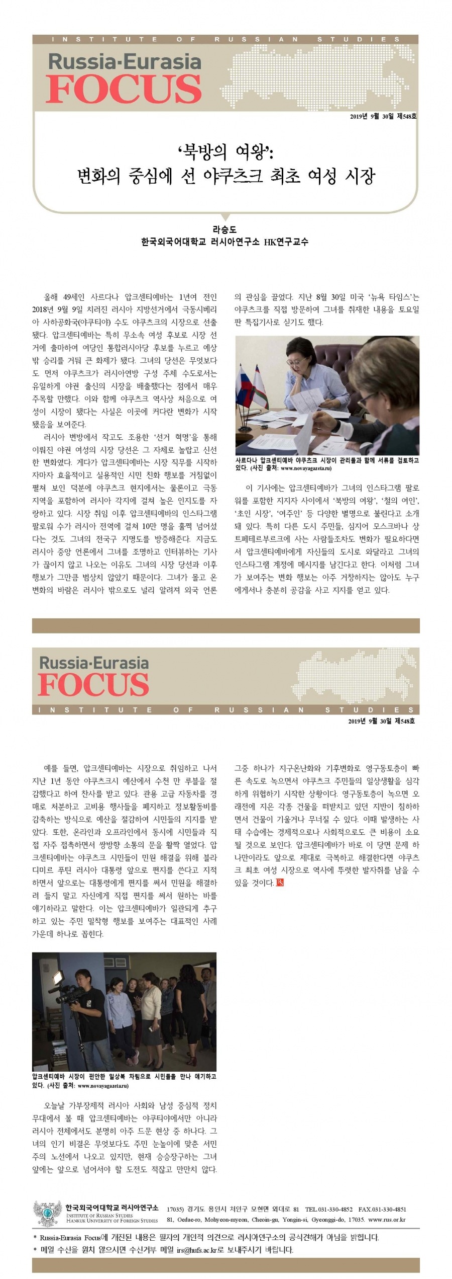 제548호 ‘북방의 여왕’: 변화의 중심에 선 야쿠츠크 최초 여성 시장
