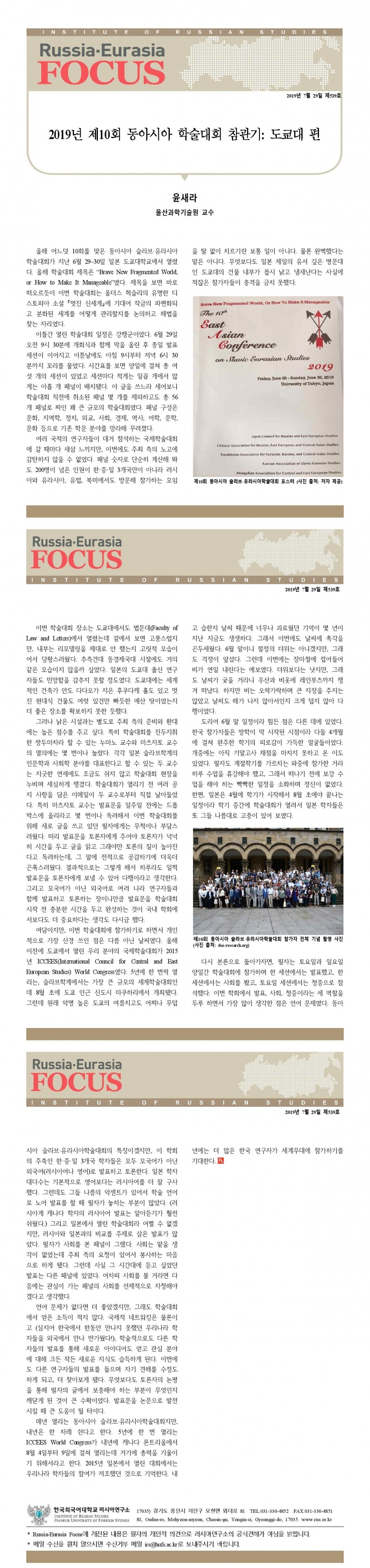 제539호 2019년 제10회 동아시아 학술대회 참관기: 도쿄대 편