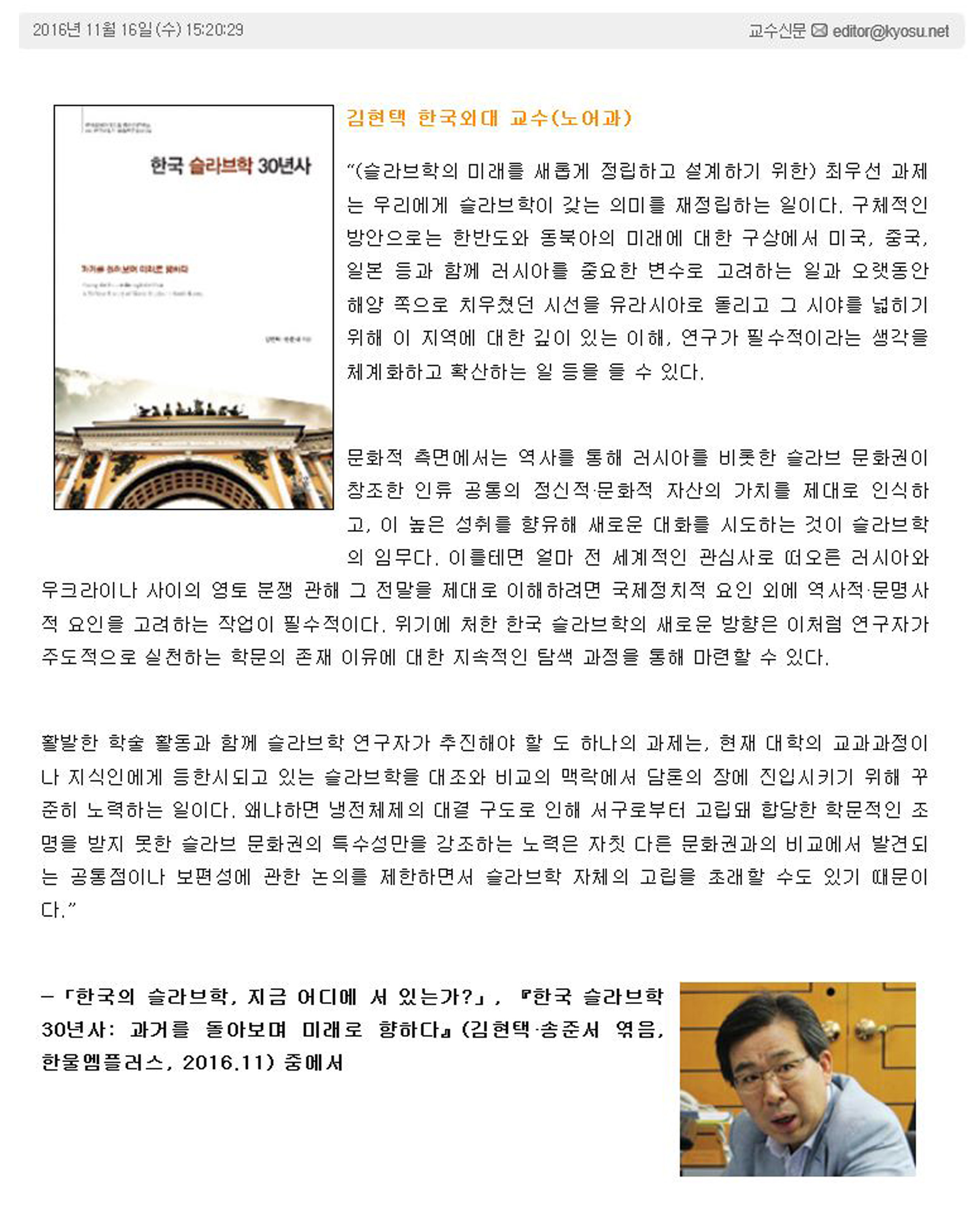 [교수신문] 한국슬라브학 30년사: 과거를 돌아보며 미래를 향하다