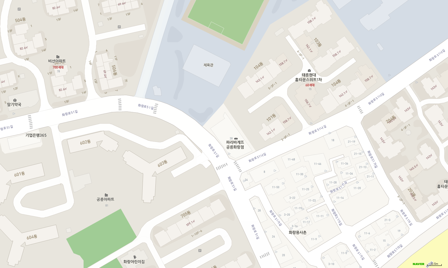 화랑타운, 비선아파트, 현대스위트홈 중간에 위치.