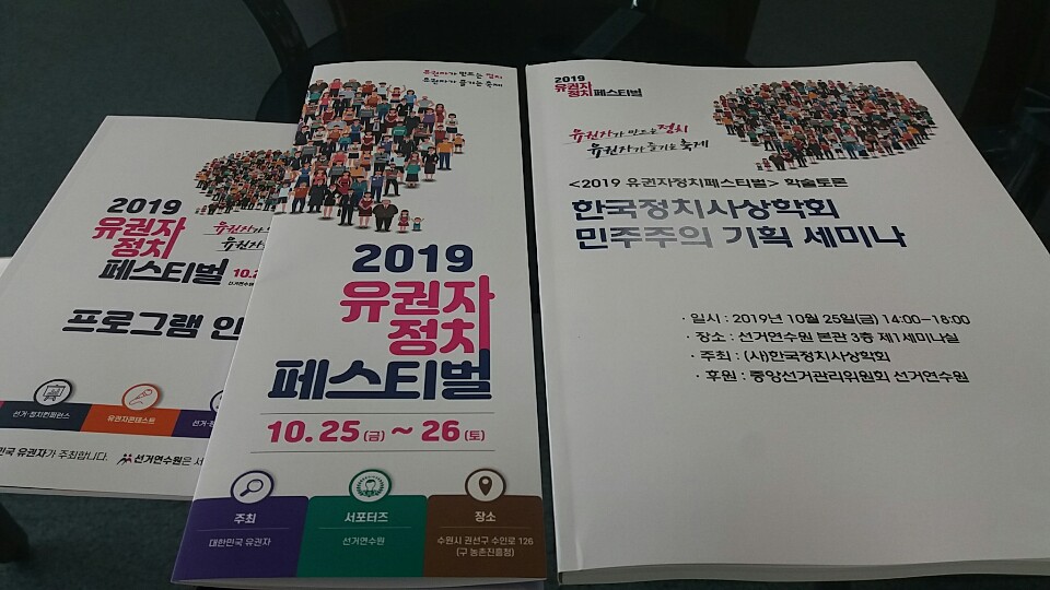 우리 사상학회는 2019년 선거연수원이 지원하는 선거페스티벌 학술세미나에 참여하였습니다. 한국사회와 민주주의 문제에 대한 사상적 개입의 장을 넓히고자 한국 민주주의에 대한 철학적 정치사상사적 접근을 주제로 모두 6편의 논문을 발표하고 토론하는 뜻깊은 자리를 가졌습니다.