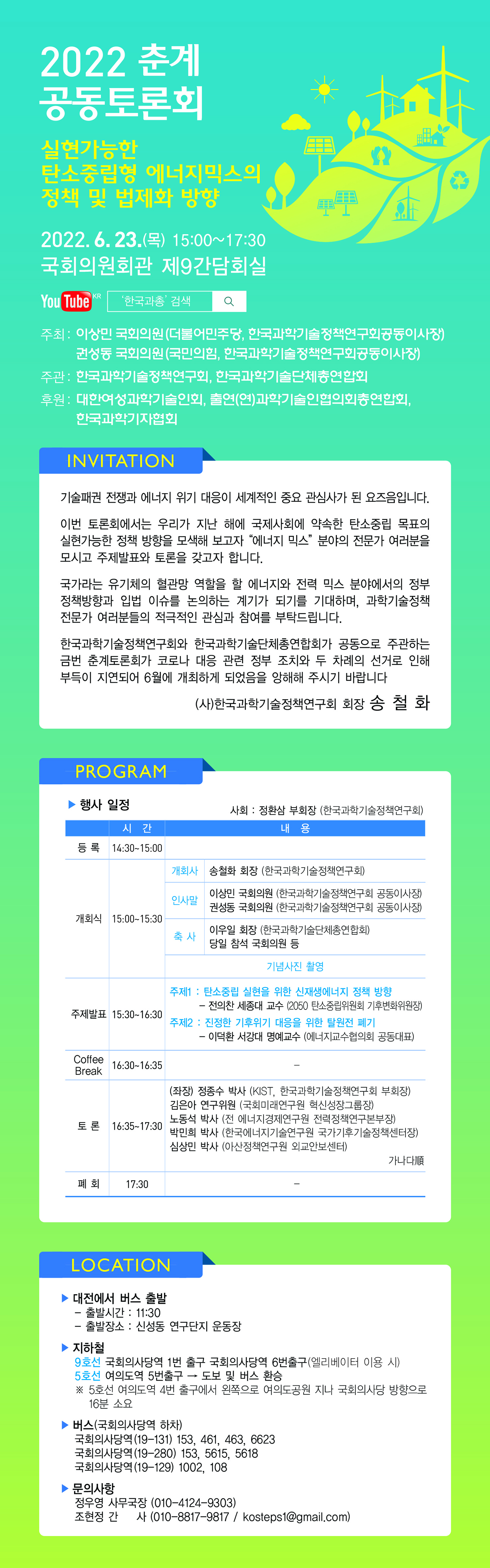 [한국과총] [2022 춘계 공동토론회] 실현가능한 탄소중립형 에너지믹스의 정책 및 법제화 방향
