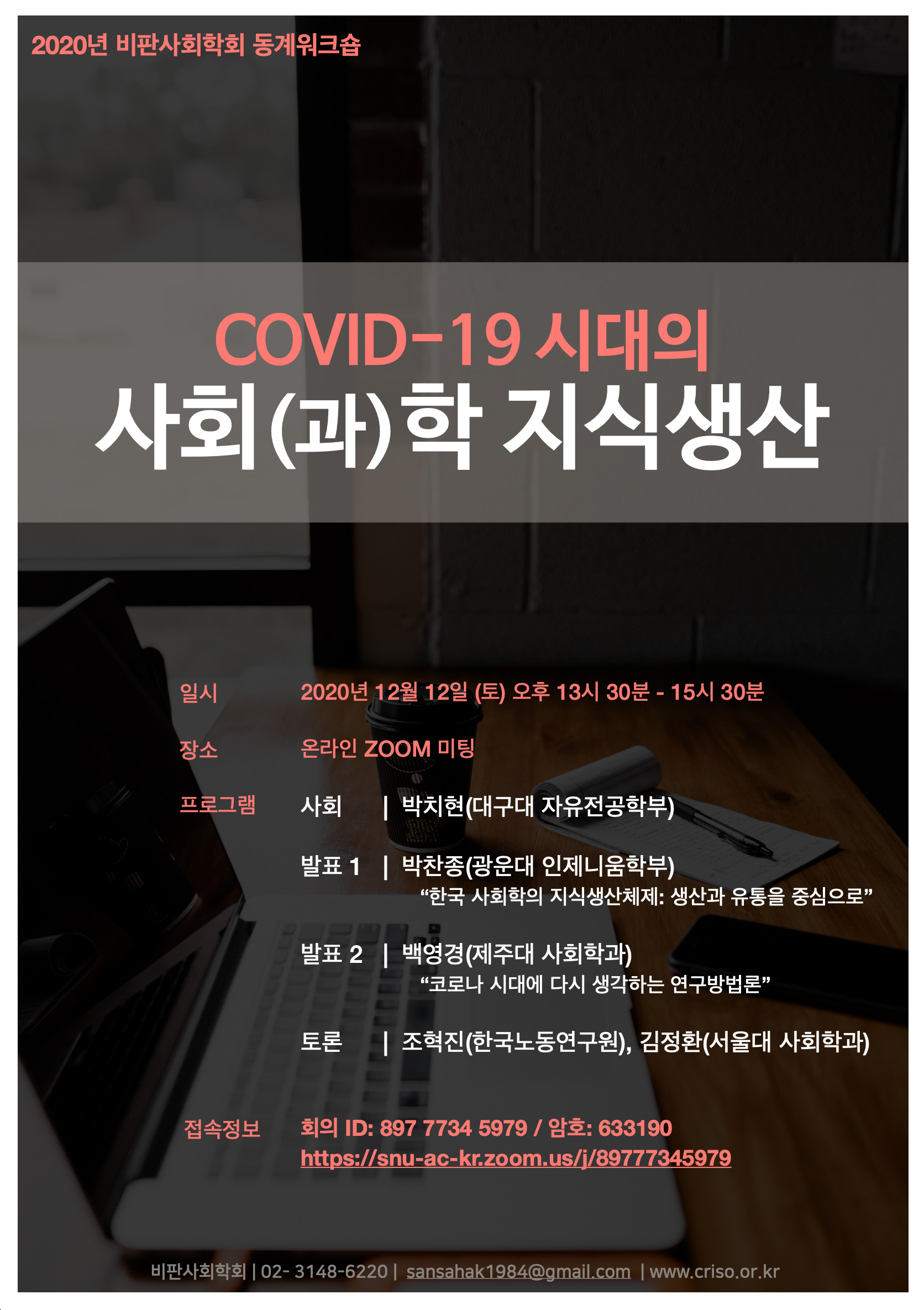 2020년 비판사회학회 <동계 워크숍 및 총회>를 안내 드립니다.