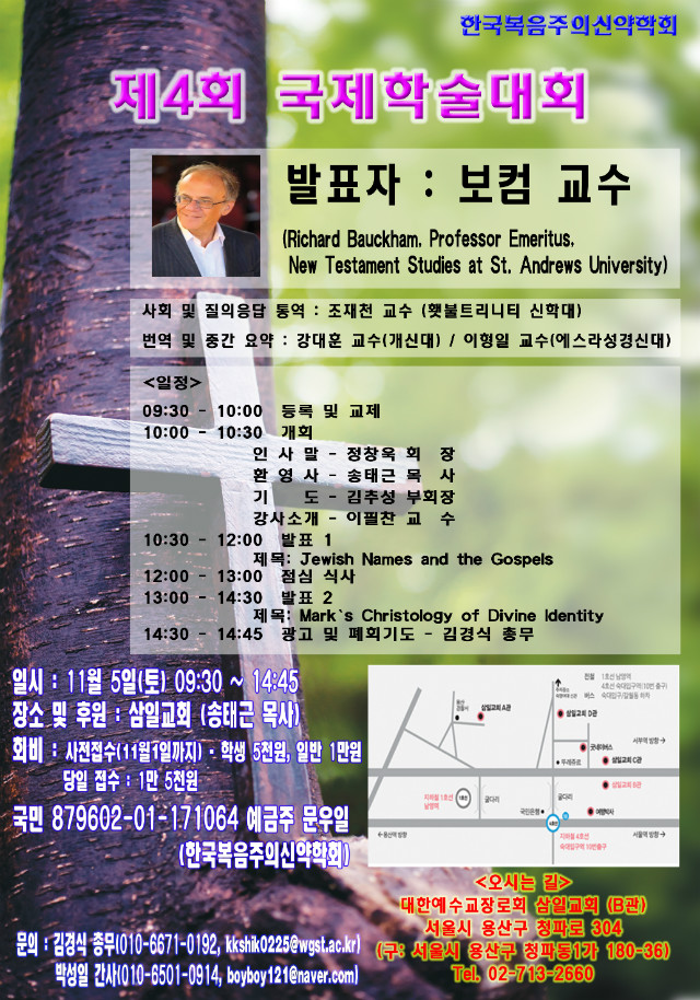 강사: 리처드 보컴 박사(영국 성앤드류대학교/ 신약학 명예교수)