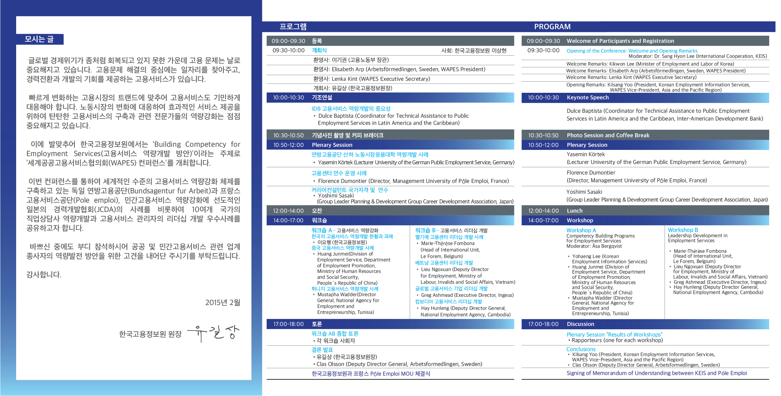 - 주최 : 고용노동부, World Association of Public Employment Services(세계공공고용서비스협의회)