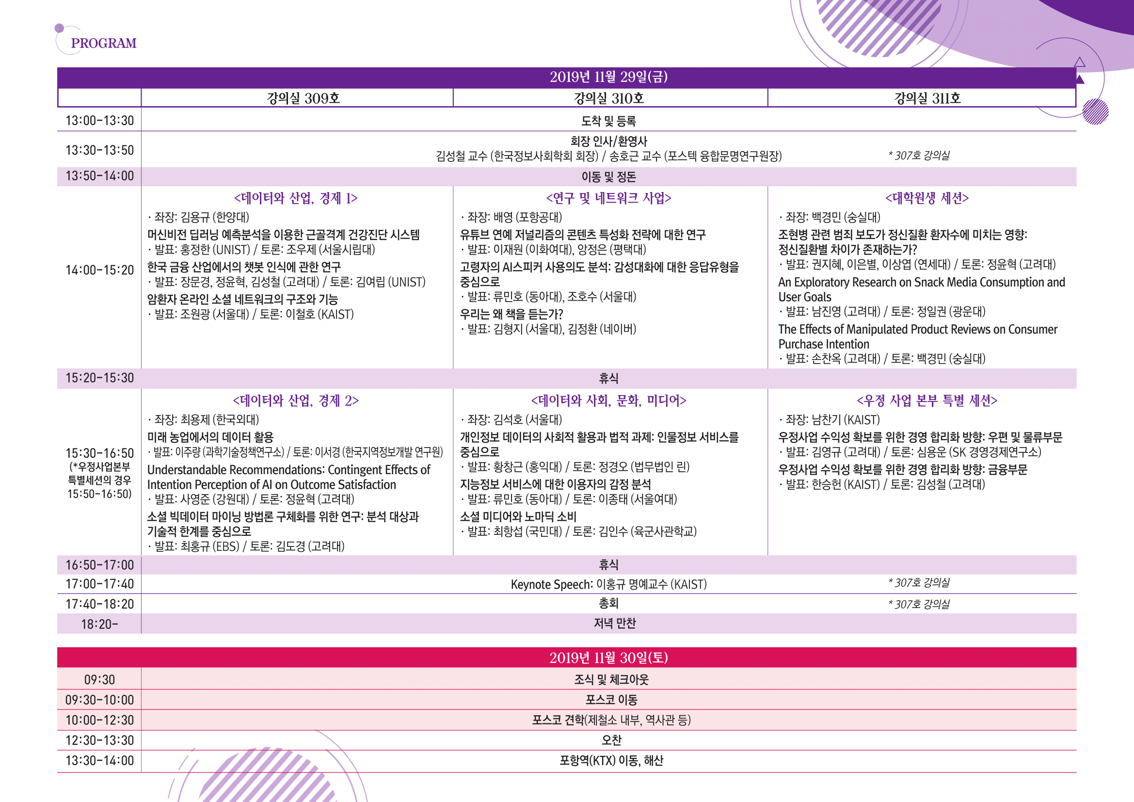▶ 장 소 : 포항공과대학교 무은재기념관 307호, 309호, 310호, 311호
