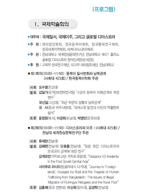주관 : 전남대학교 세계한상문화연구단, 전남대학교 BK21플러스 글로벌 디아스포라 창의인재양성사업팀