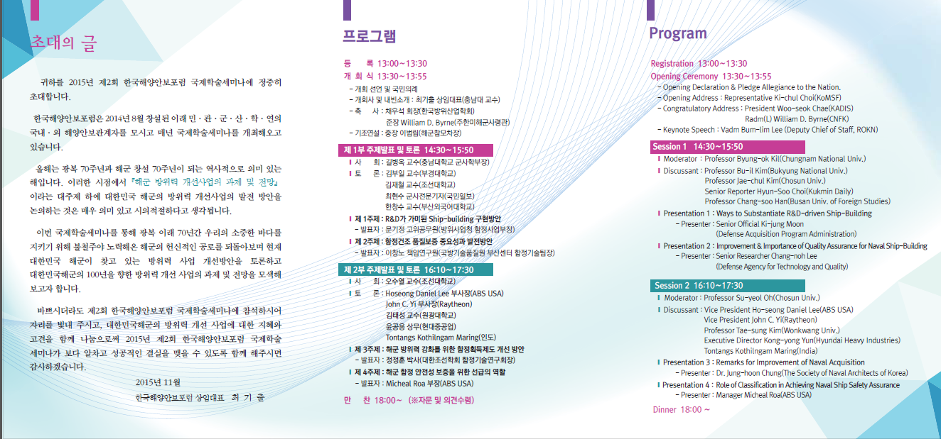 주 제 : 해군 방위력 개선사업의 과제 및 전망