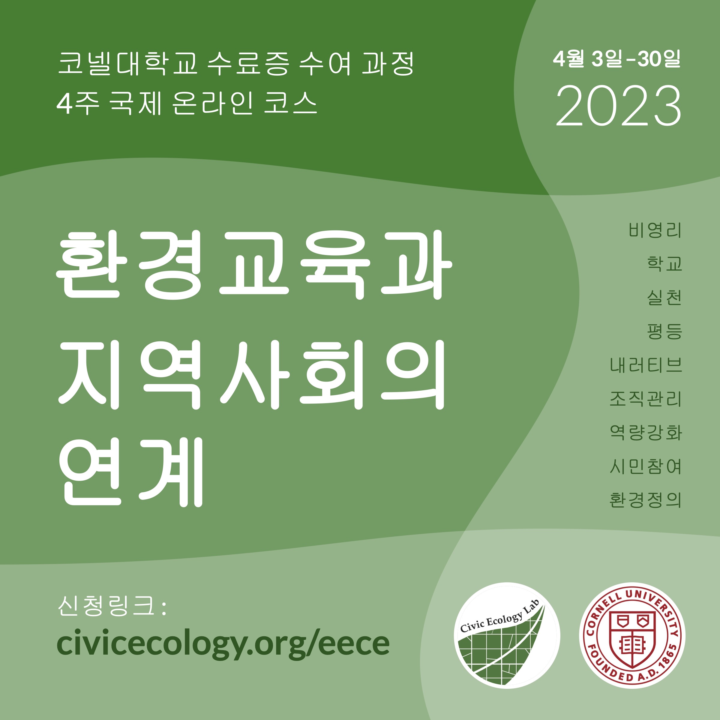 - 강좌명: 환경교육과 지역사회의 연계 (Environmental Education & Community Engagement)