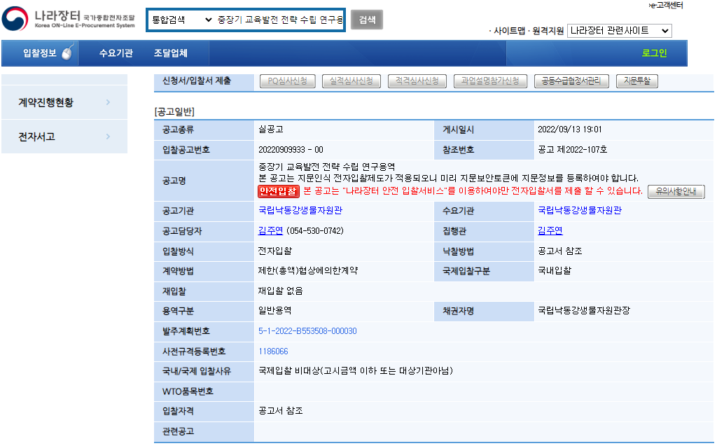 환경부 산하 공공기관인 국립낙동강생물자원관에서 환경교육관련 용역사업 공고가 진행되고 있습니다.
