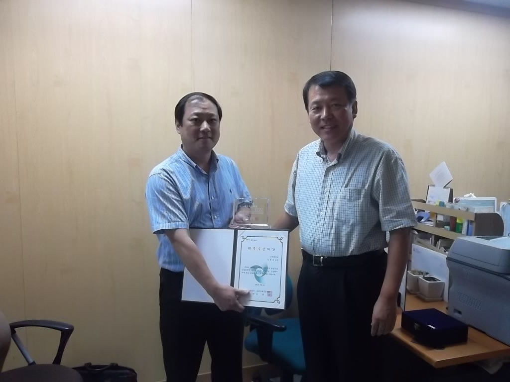 9월 8일, 유체기계공업학회 9월 이사회에서 최우수 강의상 수여식이 있었다. 지난 7월 5~8일, 서울 역삼동 과학기술회관에서 개최된 제5회 유체기계 핵심기술 강습회에서 등록인원 최다 분과의 강연 중에서 최우수 강의를 선정하여 해당 강사에게 수여한 이 상은 가스/스팀터빈 야에서 ‘가스터빈 발전설비 성능특성 및 성능향상 기술’에 대하여 강의한 김동섭 교수(인하대학교)와 막여과 플랜트 분야의 ‘해수 담수화 분야 연구개발 동향’에 대하여 강의한 박기용 부장(효성굿스프링스)이 각각 수상하였다.