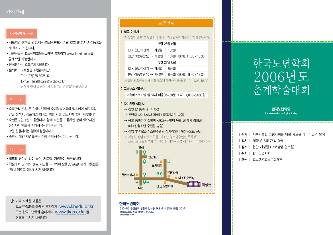 * 문 의: 한국노년학회 전화: 0502-562-9106, 팩스: 041-563-7922