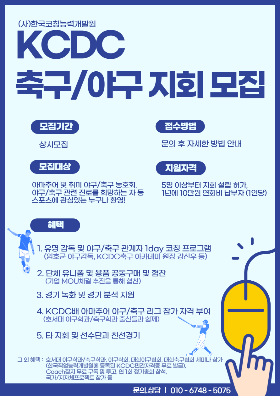 전국의 축구와 야구를 사랑하고 즐기는 자들을 대상으로 축구/야구 지회를 모집 중입니다.