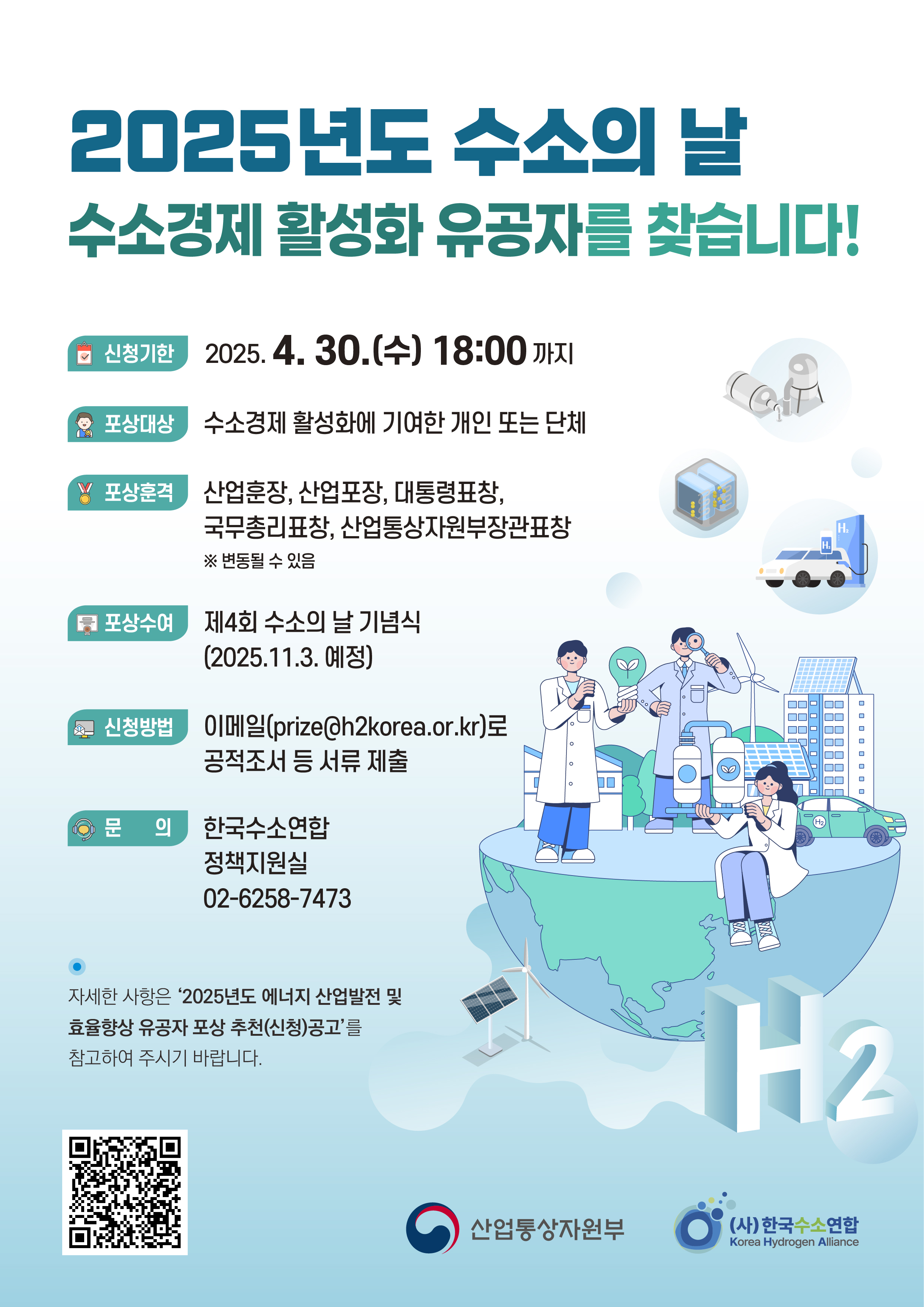 : 사단법인 한국수소연합 정책기획실 김건윤 선임연구원(02-6258-7473 /prize@h2korea.or.kr)