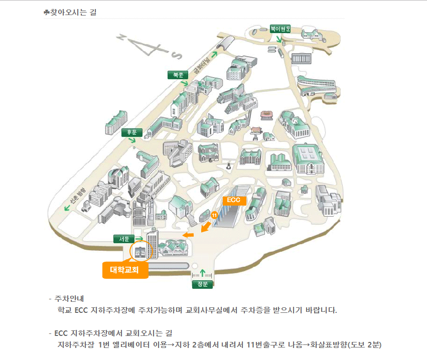 이화여대 캠퍼스 맵을 같이 첨부파일로 보내오니, 참고하시길 바랍니다.