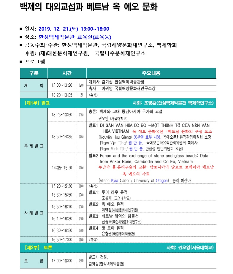 [학회 안내] 백제의 대외교섭과 베트남 옥 에오 문화