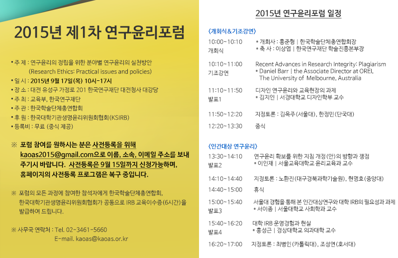 2015년 제 1차 연구윤리포럼 안내
