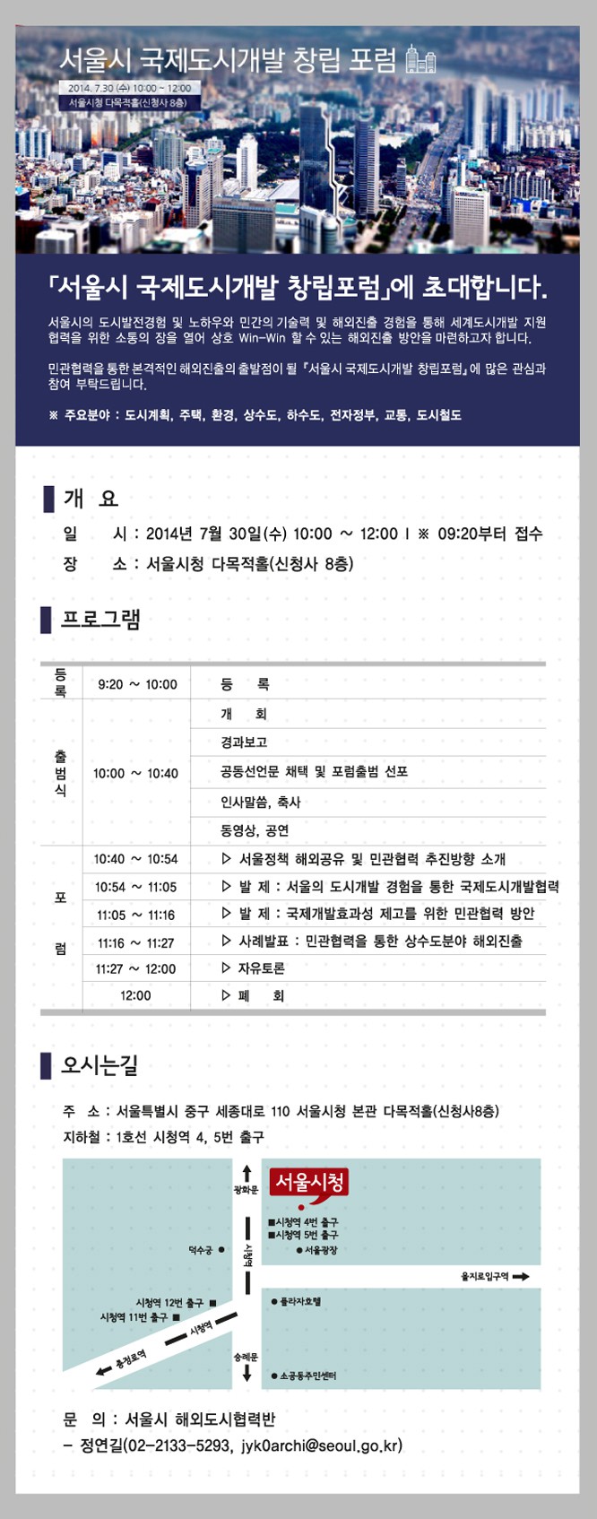 [서울시 국제도시개발 창립 포럼]을 아래와 같이 개최하고자 합니다.