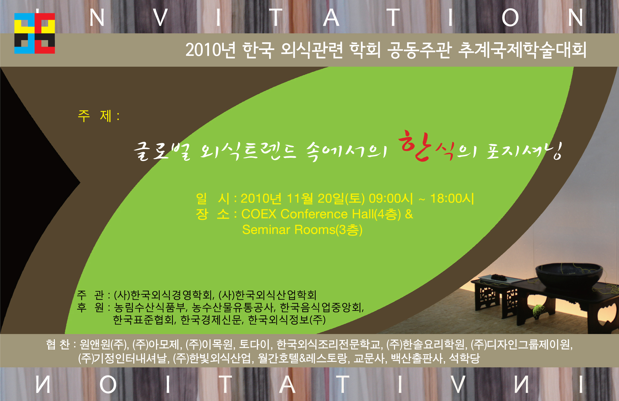 (사)한국외식경영학회, (사)한국외식산업학회 공동주관으로 2010 정기 추계학술대회를 2010년 11월 20일