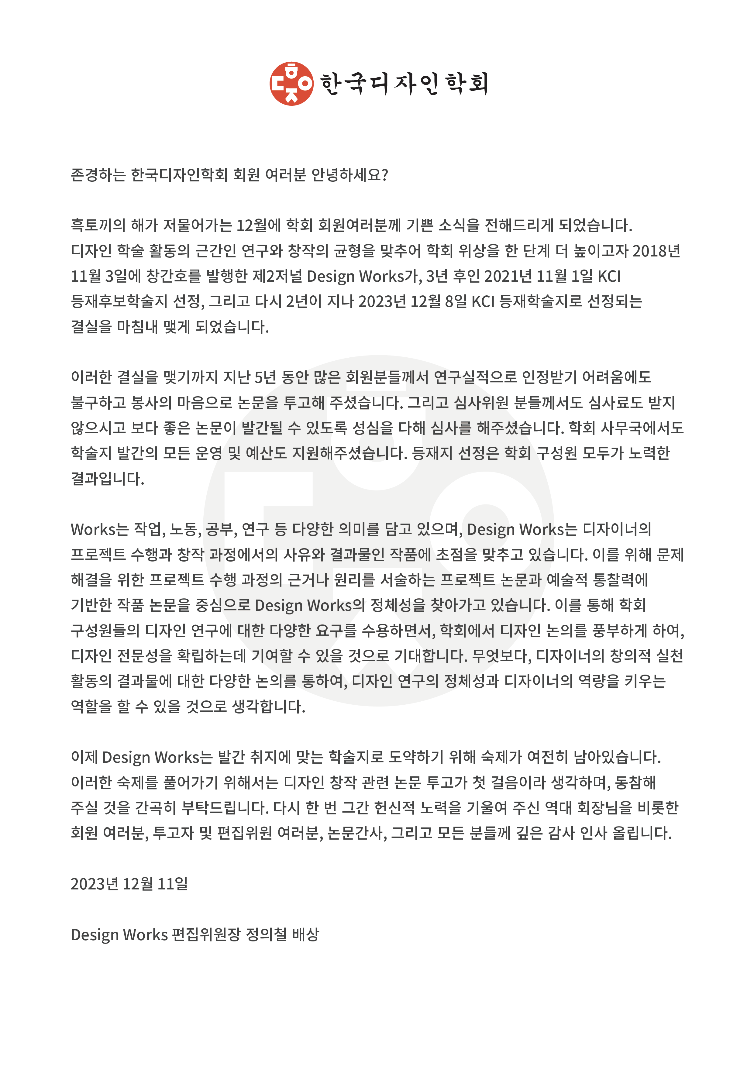 그동안 디자인웍스에 대한 관심과 논문을 투고해 주신 회원 및 연구자님들께 감사드립니다.