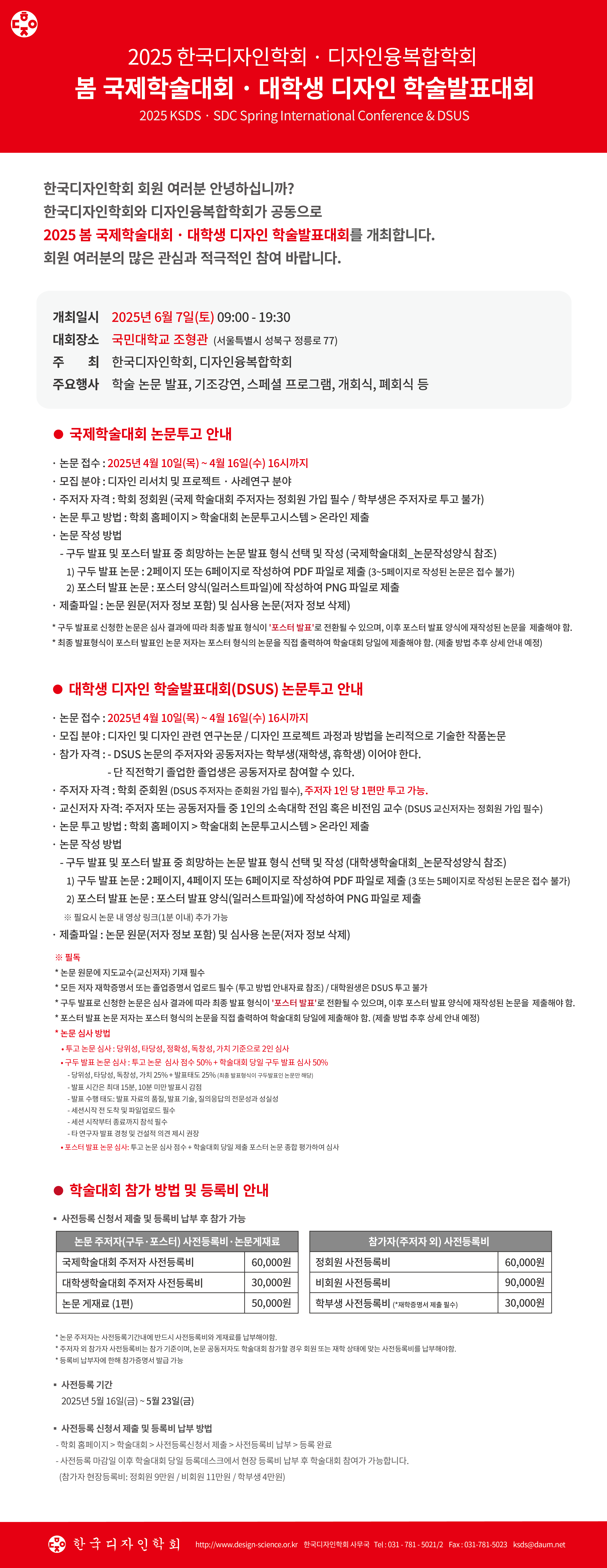 2025 봄 국제학술대회 · 대학생 디자인 학술발표대회 개최 안내
