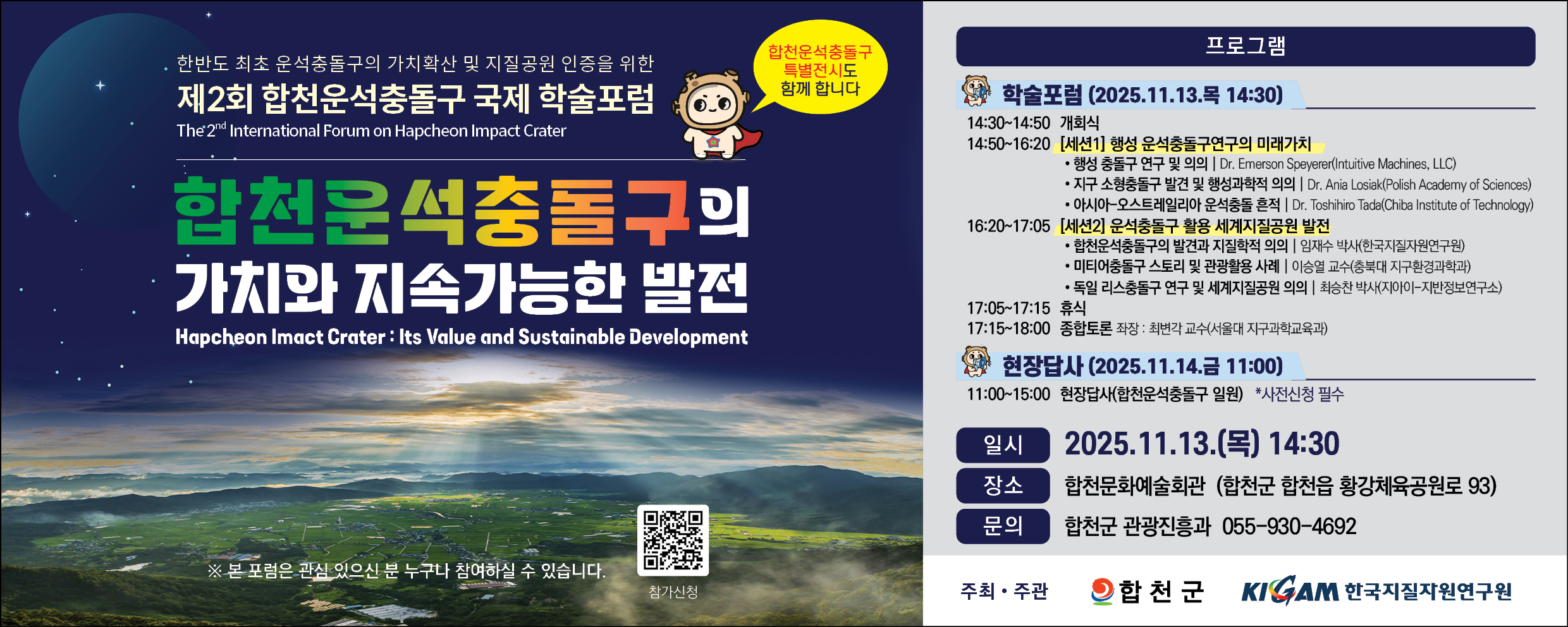 ▶행사명 : 제2회 합천운석충돌구 국제 학술 포럼 : 합천운석충돌구의 가치와 지속가능한 발전