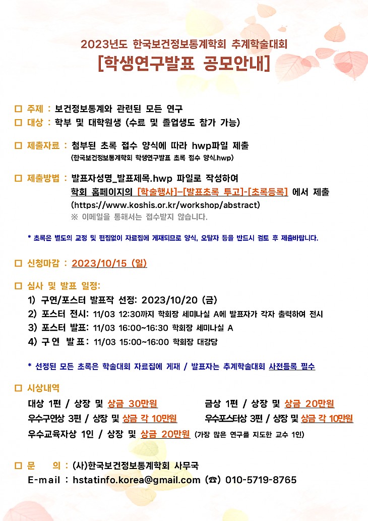 1) 행 사 명 : 2023년 한국보건정보통계학회 추계학술대회