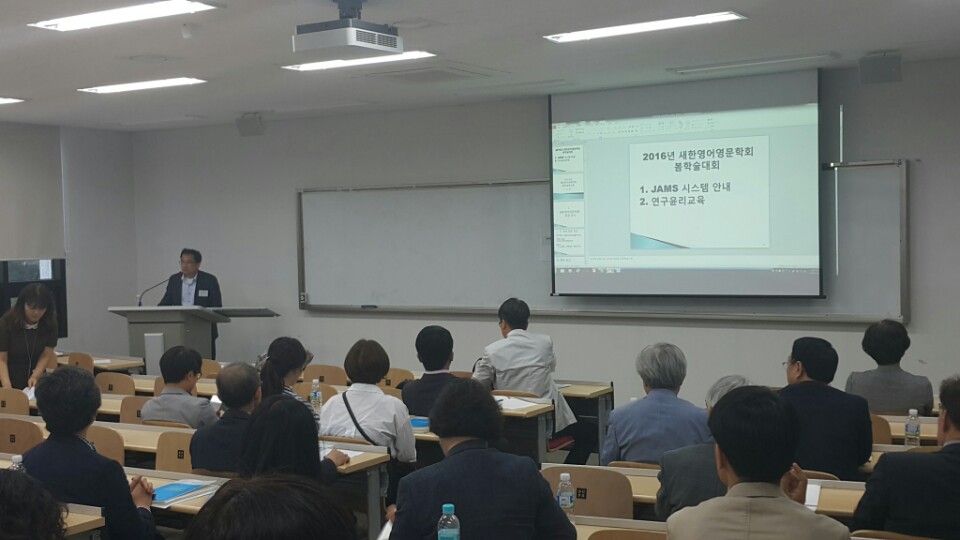 그리고 2016년 새한영어영문학회 봄 학술대회의 연구윤리 교육과 JAMS에 대한 설명회 사진을 학회 <자료실>-<학회 앨범>에도 올려놓았습니다.