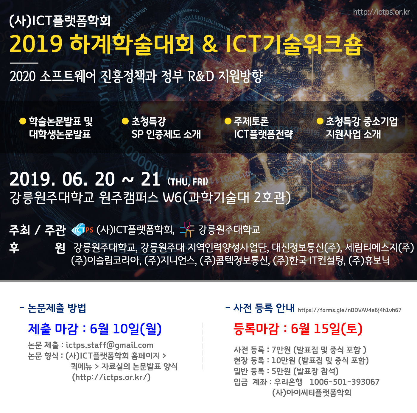 2019 하계 학술대회 및 ICT기술 워크숍 개최 (6월 20일~21일)