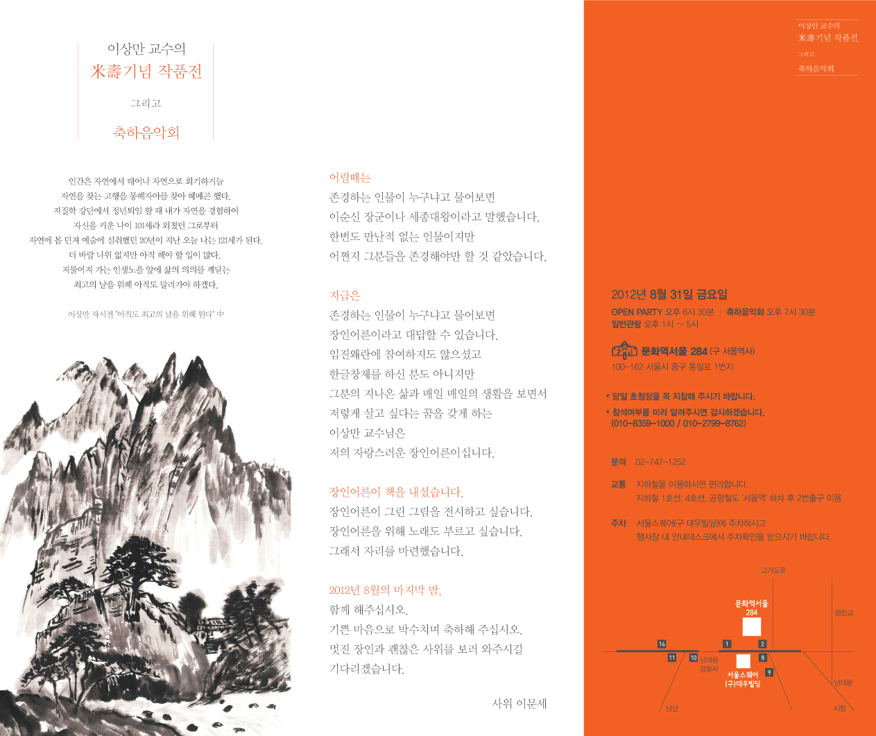 이상만 전임 회장님 미수 기념식 초대