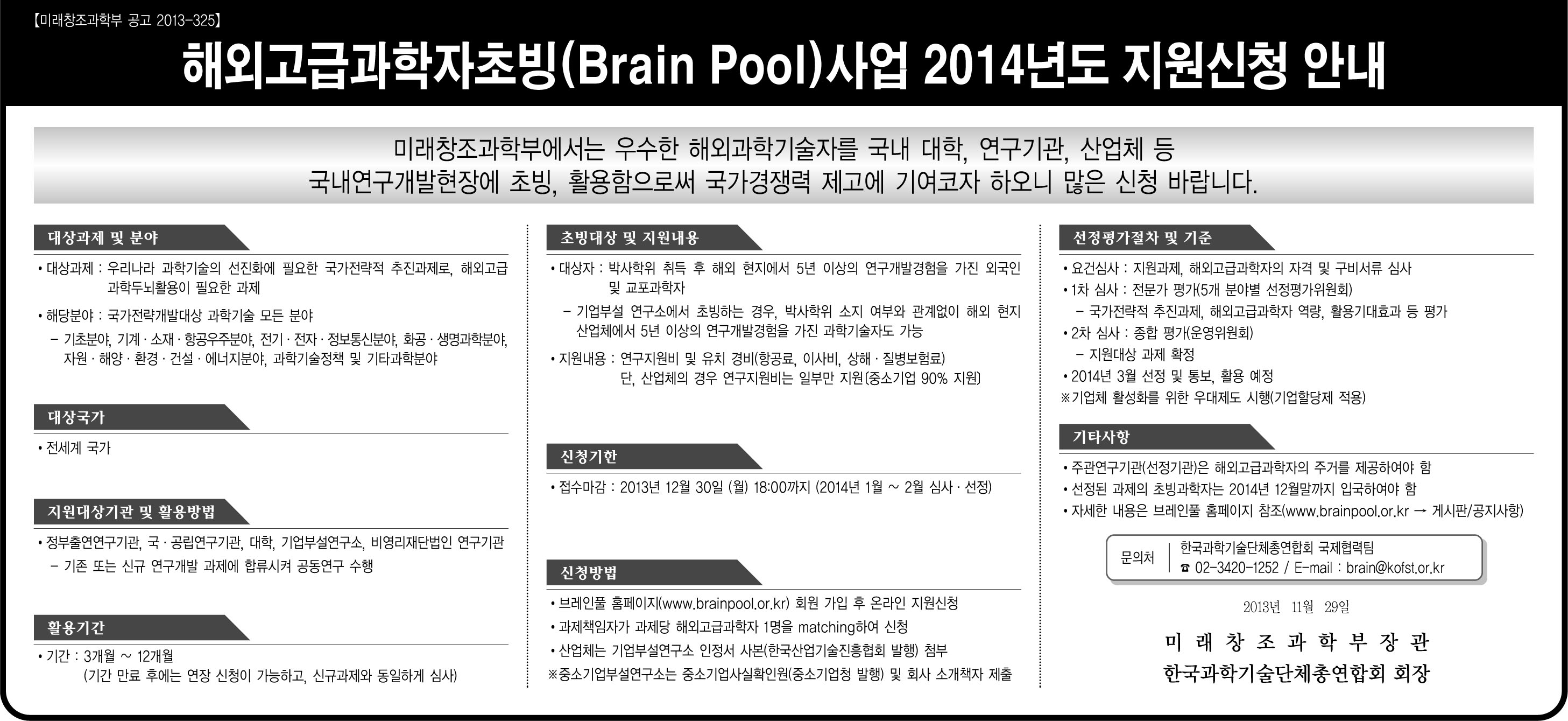[한국과학기술단체총연합회]Brain Pool사업 2014년도 지원신청 안내