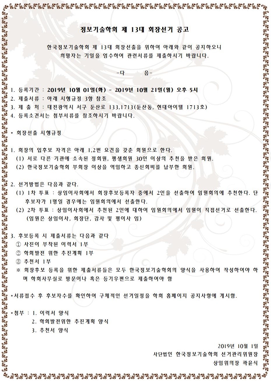 제 13대 학회장선거 공고