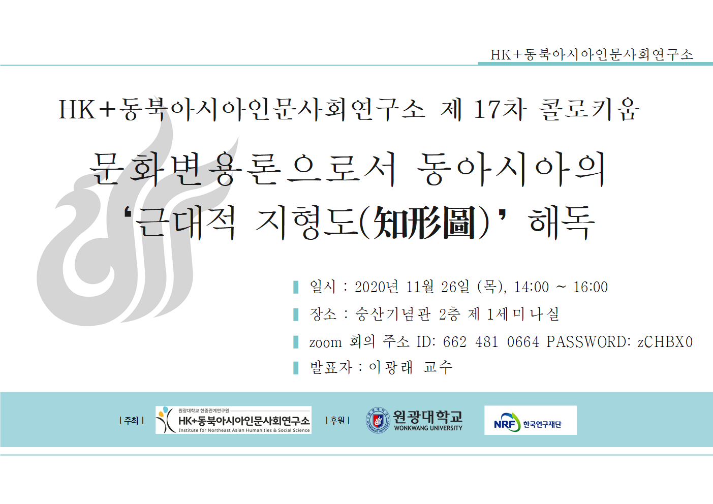 동북아시아인문사회연구소]11월 26일 제 17차 콜로키움 안내
