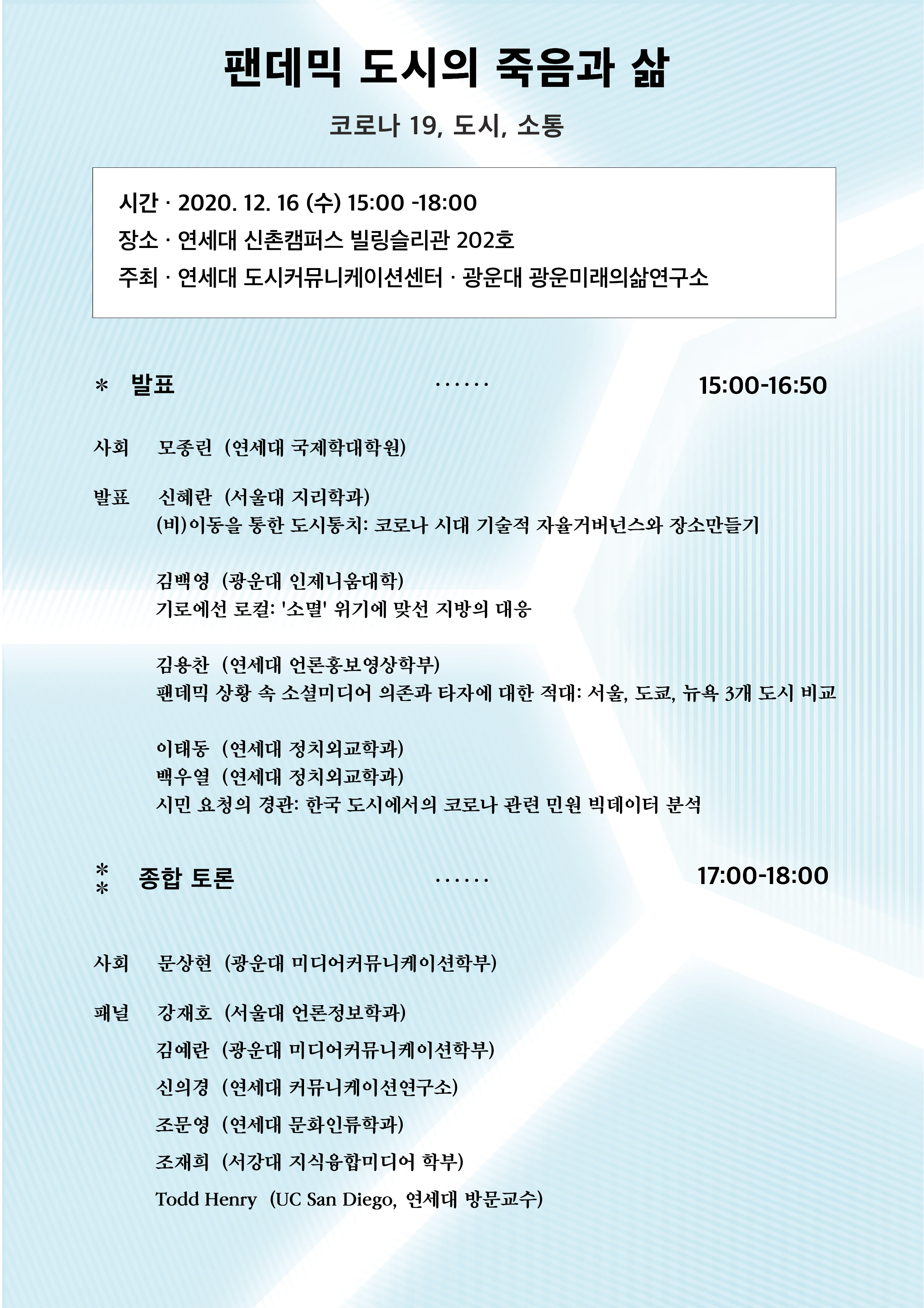 1) 일시: 2020년 12월 16일 목 15:00-18:00