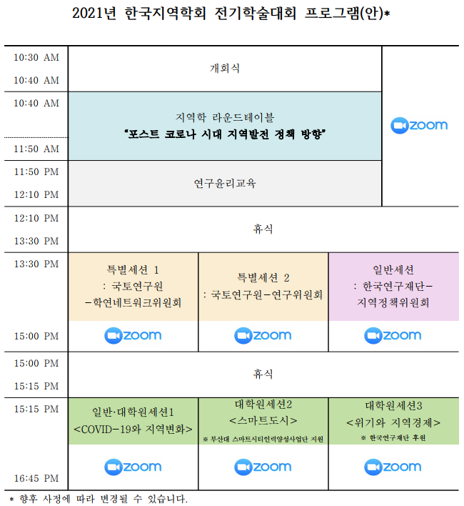 이번 후기 학술대회는 COVID-19 확산방지를 위해 온라인(zoom)으로 진행될 예정입니다.