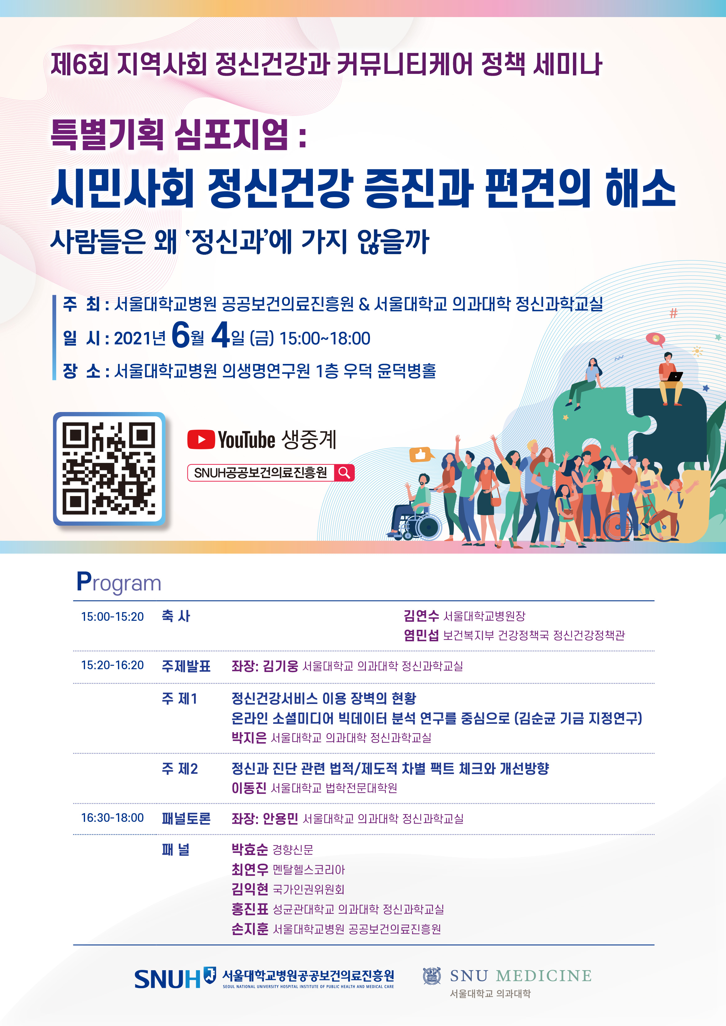 <서울대병원 공공보건진흥원>과 <서울대학교의과대학 정신과학교실> 공동주최로 특별심포지엄을 개최한다고 하오니,